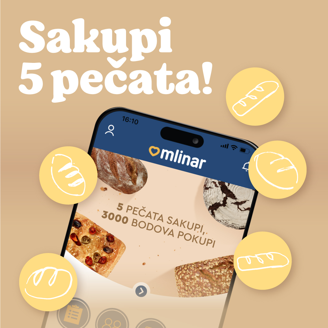 Uživanje u kruhu sada je i nagrađeno! Uz kupnju novih Mlinar kruhova s kiselim tijestom skupljaš pečate u loyalty aplikaciji – svaki kruh donosi jedan pečat!